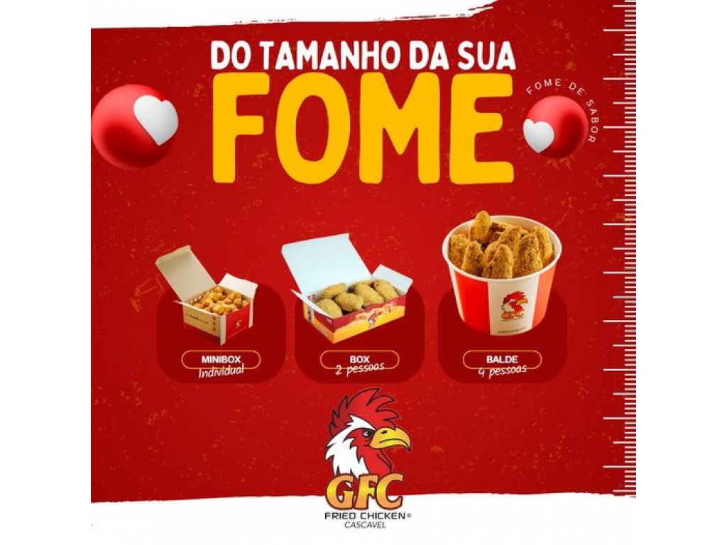 A GFC Frango Frito funciona de terça-feira a domingo, nos seguintes horários: de terça a quinta-feira, das 17h às 22h; de sexta-feira a domingo, das 17h às 23h30.